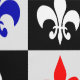 Rood Blauw en Wit Geometrisch Heraldisch Frans Fleur-de-lis Patroon Design Behang