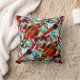Uitgelicht is een schuin schuin afdrukpatroon voor moderne abstracte kunst, gemaakt in vormen en lijnen in meestal helderrood met aqua en helderblauw, wit, zwart, wat suggereert dat er een verfspatten op canvasprint is in combinatie met batikontwerp. De algehele look is intens en levendig, mooi en exotisch, inspireert een chique en elegante kwaliteit, en creëert tegelijkertijd een warme, uitnodigende en rustgevende sfeer voor woonkamer, slaapkamer, werkruimte, terras of patio-inrichting. Het ontwerp past in tal van vernieuwende tot traditionele stijlen - van boerenhoeve tot ranch-stijl, voorstadsmodern tot rustieke hacienda tot urban loft of trendy bohemien tot / retro - hetzij als onderdeel van een thema of als contrasterend accentstuk.