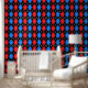 Rood Blauw Zwart Argyle Diamond Pattern Design Behang