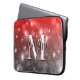 Deze laptophoes heeft een achtergrond van rode en grijze bokeh sparkle. Eenvoudig en modern. Voltooi het met een gepersonaliseerd monogram en een naam. Creëer door Simply Farmhouse Press.
