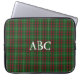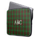 Deze neopreenlaptoptas is voorzien van de feestkleuren rood en groen in een traditioneel Schots geblazen tartan. monogram.