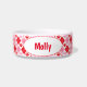 Dit schattige huisgerecht toont een rood en roze arleystijl & een hardepots afdrukpatroon en een ruimte om de naam van je huisdier toe te voegen.