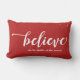 Stijlvol en leuk, dit kussen is de perfecte manier om een beetje vakantiegeest aan je huis toe te voegen. Hij heeft een rode achtergrond met witte sterren rond het witte schrift "geloof" de magie van het seizoen. Vrolijk kerstfeest.