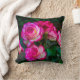 Oogstjes die rode en witte rosebuisjes vangen en die zijn aangebracht op decoratieve kussen.