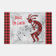 Geef deze unieke "Een van de soort" rode en zwarte Pset Kokopelli kerstklep een persoonlijk tintje! Het is voorzien van een Kokopelli die de Flute met Muzieknoten speelt en danst op een witte kerstachtergrond met sneeuwvlokken, omringd door een rode en zwarte speldengrens en de opwindende woorden... "Vrede op aarde"! Origineel kunstontwerp door artiest Kerry Miller.