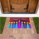 "Happy Hanukkah." Decoreer uw ingang in "stijl" met deze unieke, leuke, op maat gesneden vreugde! Een speelse, moderne, artsachtige illustratie van boho patroonkaarsen in een menorah helpt je om mee te doen in de vakantie van Hanukkah. De gesorteerde blauwe kaarsen met kleurrijke faux folie patronen en gouden faux vlammen bedekken een rijke, diep verbrande rode oranje achtergrond met een textuur. Verander de groet als u aan ander exemplaar of jouw naam wenst. De kaarten, de stickers, de ornamenten, de mokken, de drinkkware, de kussens, de huisdécor, en meer zijn ook beschikbaar. Wat een vermakelijke manier om dit feestelijke seizoen te vieren en iedereen die je binnenkomt welkom te heten! Gebruikend de makkelijk te gebruiken sjablonen, verander de groet in jouw naam of ander exemplaar, en u kunt dit doormat van Hanoeka moeiteloos personaliseren. Stuur me alstublieft alle vragen of verzoeken.
