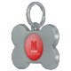 Rood geometrisch maaspatroon Monogram en telefoonnummer Pet ID-tag. Personaliseer Monogram met uw hond aangepaste initiaal en naam en telefoonnummer. Cool Pet Supplies met gradiënt geometrische mesh patroon driehoeken ombre. Driehoek geometrisch netwerk met licht donkergrijze ombre gradiënt.