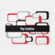 Een leuk midden-eeuws geïnspireerd patroon gedaan in rode, grijze en zwarte retro-vierkanten tegen een witte achtergrond. De tekst, gedaan in een populaire typografie, op de zwarte streep kan worden gewijzigd en aangepast aan uw behoeften!