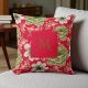 Rood groen waterverf bloemkussen met stijlvolle scriptaccenten met trendy mooie bloemetjes en een look, ideaal voor vakantie, voorjaar, herfst, herfst of winterhuisinrichting.