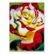 Ideaal voor Moederdag met gedicht en met een origineel kunstontwerp van het schilderen van waterverf door Sacha Grossel van rode en gele hybride theebloem tegen groene achtergrond. Dit heldere en hedendaagse kunstontwerp is van een breed, scherp gefocust macro-bloemontwerp van een botanisch motief in heldere, levendige, kleurrijke stijl voor florale en roos liefhebbers overal.