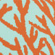 Een waterverf van een sterk rif van rood koraal met realistische grove randen met een aqua blue Caribbean zee. Onderdeel van het Coastal collectie door cheriedesues_studio.