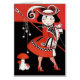 Zwart, rood en wit teken van een klein meisje dat over haar schouder kijkt met een rode jas, visnetkousen, hoge hakken en een fancy pet. Tekening door de Italiaanse cartoonist Antonio Rubino voor de omslag van het kindertijdschrift "Il giornalino della Domenica", 1909.
