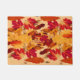 Hier is een prachtige deurmat die een herfst vieren. Op een bleke oranje achtergrond worden herfst-bladerkleuren van rood, oranje, geel en bruin weergegeven. Pas de achtergrond eenvoudig aan op uw decor.