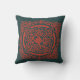Sierkussen met rood ornament grafiekillustratie op donkergroene achtergrond.