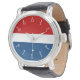 Ondersteun het rood, wit en blauw in alles wat je doet en draag, inclusief dit geweldige horloge. Met een gezicht met klassieke witte cijfers over een rode en blauwe achtergrond met een witte streep, is dit horloge de definitie van stijl.