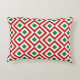 Dit gewaagde rode, groene en witte geometrische patroon accent kussen beschikt over een origineel ornamentaal ontwerp perfect voor Kerstmis. Rode meanders hoek rond witte diamanten met kleine groene diamanten. Witte zigzags zorgen voor scheiding tussen de kronkelende karmozijnpaden. Digitaal gemaakt afbeelding van 9.000 x 6.000 pixels. Copyright ©2013 Claire E. Skinner, Alle rechten voorbehouden.