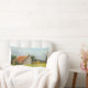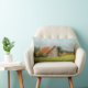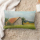 Deze lumbale kussen hebben een afbeelding van een stevige, met rood dak bedekte schuur in een zonnige weide die oorspronkelijk door Jayne Wilson in zachte pastels was geschilderd.