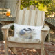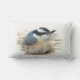 Deze buitenkant kussen cadeaus een Roodgebrande Nuthatch die lijkt alsof hij de baas is! Hij is een zeer kleine vogel met een roestkleurige borst, een blauwe grijze rug en een zwarte ooghout. Zijn hoofd en snavel zijn zeer groot in verhouding tot zijn lichaam.