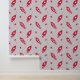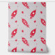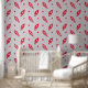 Dit schattige behang heeft een patroon gemaakt van handgetekende rode ruimte raketten.