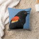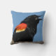Dit buitenkussen cadeau een mannetje Roodvleugelige Blackbird. Elke zomer arriveert de kudde om zich te vestigen in hun verschillende uitgesneden gebieden. Ze lijken dol te zijn op staarten. Het mannetje is glanzend zwart met een rode schouder en gele vleugelstaaf, terwijl het vrouw een onopvallend donkerbruin is. Deze kerel schreeuwt zijn kenmerkende lied dat in Lakota wordt beschreven als tōke, mat'ā nī ("Oh! dat ik zou kunnen sterven"). Het afbeelding wordt op de rug herhaald.