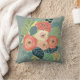 Geschilderde rozen en moeder met dramatische bladeren in variaties van koraal, blauw en groen. Zilveren hemel achtergrond en terug.