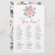 Deze vrijgezellenfeest spelkaart is wat er in je tas zit? Het ontwerp bevat waterverf stoffige rozen bloemen en eucalyptusbladeren. Pas de achterzijde van de kaarten aan met de naam van de bruid. Overeenkomende producten beschikbaar.