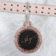Glam Roos Gold Glitter Elegant Monogram Pet ID Tag Pas dit trendy label met een tulband-inktvis met elegant roos gouden mousserende glitter op een zwarte achtergrond eenvoudig aan. Het ontwerp kenmerkt uw handgeschreven manuscriptmonogram met cirkels en jouw naam.