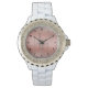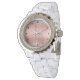 Ontdek de tijdloze elegantie met dit rijnsteen witte emaille horloge voor vrouwen, versierd met een chique rozen gouden geborsteld metaaldetail en sprankelende glitteraccenten. Het horloge is voorzien van een gepersonaliseerd monogram, waarbij een initiaal sierlijk door de naam heen slaat en een verfijnde toets toevoegt. Dit stuk combineert moeiteloos functionaliteit met stijl, waardoor het een prachtig accessoire is voor elke gelegenheid.