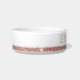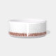 Roos gouden stoffige roze geprinte glitterstreep met confettistofstrooien en aangepaste kat- of hondennaam op een witte keramische kat of hondenvoer en waterbak. Voer elke gepersonaliseerde tekst in die u leuk vindt voor een meisjesachtig, sprankelend voer voor huisdieren of een waterbak. Bekijk ons collectie van het coördineren van kommen en krijg een set!