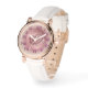 Dit prachtige rozen gouden en witte Romeins cijferhorloge is ontworpen met een roze helling en een bloemengezicht. Voeg deze beauty toe aan uw sieraden collectie of aankoop voor een geliefde. Dit horloge zorgt voor een geweldig verjaardagscadeau of afstuderen.