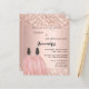 Een moderne, stijlvolle en glamoureuze uitnodiging voor een tweeling Quinceañeras, 15e verjaardagsfeestje. Een rozen gouden achtergrond met faux gouden glitter, 2 meisjes dragen baljurken. De naam is geschreven met een modern handschrift. Personaliseer en voeg uw feestdetails toe. 1 vel = 1 uitnodiging afgedrukt rand tot rand.