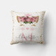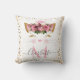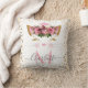 Trendy kat prinses monogram kussen. kattenprinses in roos goud, wazige roze en goudglitter, roze hartvormige neus en grote gouden glitteroogwriemen, met een kroon en roze en rode rozen florale structuur. Op de zijkanten faux golden roze sparkles confetti. Pas eenvoudig jouw naam en monogram aan en voeg deze toe om de kussen aan te passen.