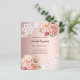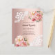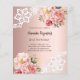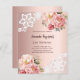 Een elegante en romantische 21e (of elke leeftijd) uitnodiging. Een roos gouden gradiënt achtergrond versierd met roze en roos gouden bloemstukken, rozen en kant. Personaliseer en voeg een naam en feestdetails toe. 1 vel = 1 uitnodiging afgedrukt rand tot rand.