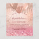 Voor een elegante 21ste (of om het even welke leeftijd) verjaardag. Een roos gouden en roze gradiëntachtergrond. Gedecorreerd met roos goud, roze faux glitterdruppels, verfdruppelende blik en ballonnen. Pas een naam, leeftijd 21 jaar en partijdetails aan en voeg deze toe. De naam wordt geschreven met een handgeschreven stijlmanuscript