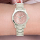Pas dit trendy horlogeontwerp met roos goudmousserend glitter eenvoudig aan op een roos gouden geborstelde metalen achtergrond.