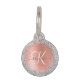 Personaliseer dit trendy chique huisdier-ID-label met zilveren sprankelende faux glitter op een rozen gouden geborstelde metalen achtergrond.