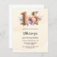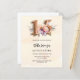 Een moderne, stijlvolle en glamour uitnodiging voor een Quinceañera. Een perzikkleurige achtergrond, versierd met een perzik en paarse waterkleurige bloem. De naam is geschreven met een modern handschrift. Personaliseer en voeg uw feestdetails toe. Nummer 15 is geschreven met een ballonstijl lettertype, script. 1 vel = 1 uitnodiging afgedrukt rand tot rand.