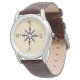 Een kompas roos op een bruine achtergrond maakt een perfect nautisch accessoire voor de booteigenaar, voor cruisen, een zeeman of zeiler.