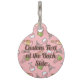 Samenstelling van rozen wijn. Fles, glas, kurkentrekker en druiven. Aangepaste achtergrondkleur. Naadloos patroon aan de achterkant. De tekst van de douane aan beide kanten.