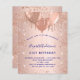 Voor een elegante 21ste (of om het even welke leeftijd) verjaardag. Een roos gouden faux metallische achtergrond. Gedecorreerd met roos goud, roze faux glitterdruppels, verfdruppelende blik en ballonnen. Pas een naam, leeftijd 21 jaar en partijdetails aan en voeg deze toe. De naam wordt geschreven met een handgeschreven stijlmanuscript met letters. Blauwe mariniers