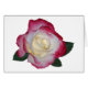 Een verbluffend mengsel van rood en wit roos op een witte achtergrond.