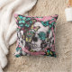 Roos van de vlinder schedel op roze kant. kussen