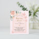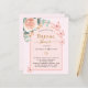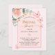 Een rozen gouden achtergrond met een rozen gouden en roze boog. Versierd met een rozen gouden en blozend roze bloemig, rozen bloem, groen waterkleurig eucalyptusgroen en vlinders. Personaliseer en voeg de naam van de bruid toe om te zijn en feestdetails. Achterkant: roos gouden achtergrond kleur. 1 vel = 1 uitnodiging afgedrukt rand tot rand.