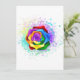 Groot, bloeiend roos met regenboogbladen op een witte achtergrond, overgeschilderd met kleurrijke, heldere verf. 3d