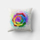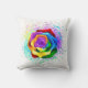 Groot, bloeiend roos met regenboogbladen op een witte achtergrond, overgeschilderd met kleurrijke, heldere verf. 3d