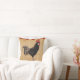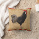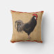 Een rooster tegen een geelachtige achtergrond, omgeven door een rode ingecheckte rand
