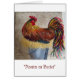 Origineel op grote leisteen. De briljante veren draperen op een elegante manier over de emmer-haan op het rietje.