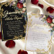 This elegant floral and gold leaves Quinceanera program is ready to personalize with your order of events, special thanks and any other information you wish to add. The design features bouquet of red roses on an elegant black background embellished with a frame of gold leaves. Designed to coordinate with the "Floral & Gold Leaves - Black & Pearl" Quinceanera Collection. To change details, click «Personalize». To move the text or change the text size, font, or color click «Click to customize further»