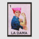 Iconisch afbeelding van Rosie de klinknagel in een roze pussy pet met het woord RESIST getatoeëerd op haar onderarm. Lichtroze halftoon Mexicaanse roze achtergrond. Feministisch design voor latinas! Een aangepaste loteria card art formaat. Verzet u tegen de corruptie in de VS en vecht voor rechten en democratie ten noorden en ten zuiden van de grens. We kunnen het!