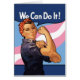 Een klassiek vintage afbeelding van Rosie de riveter met een vlag van een transgendertrots op de achtergrond.